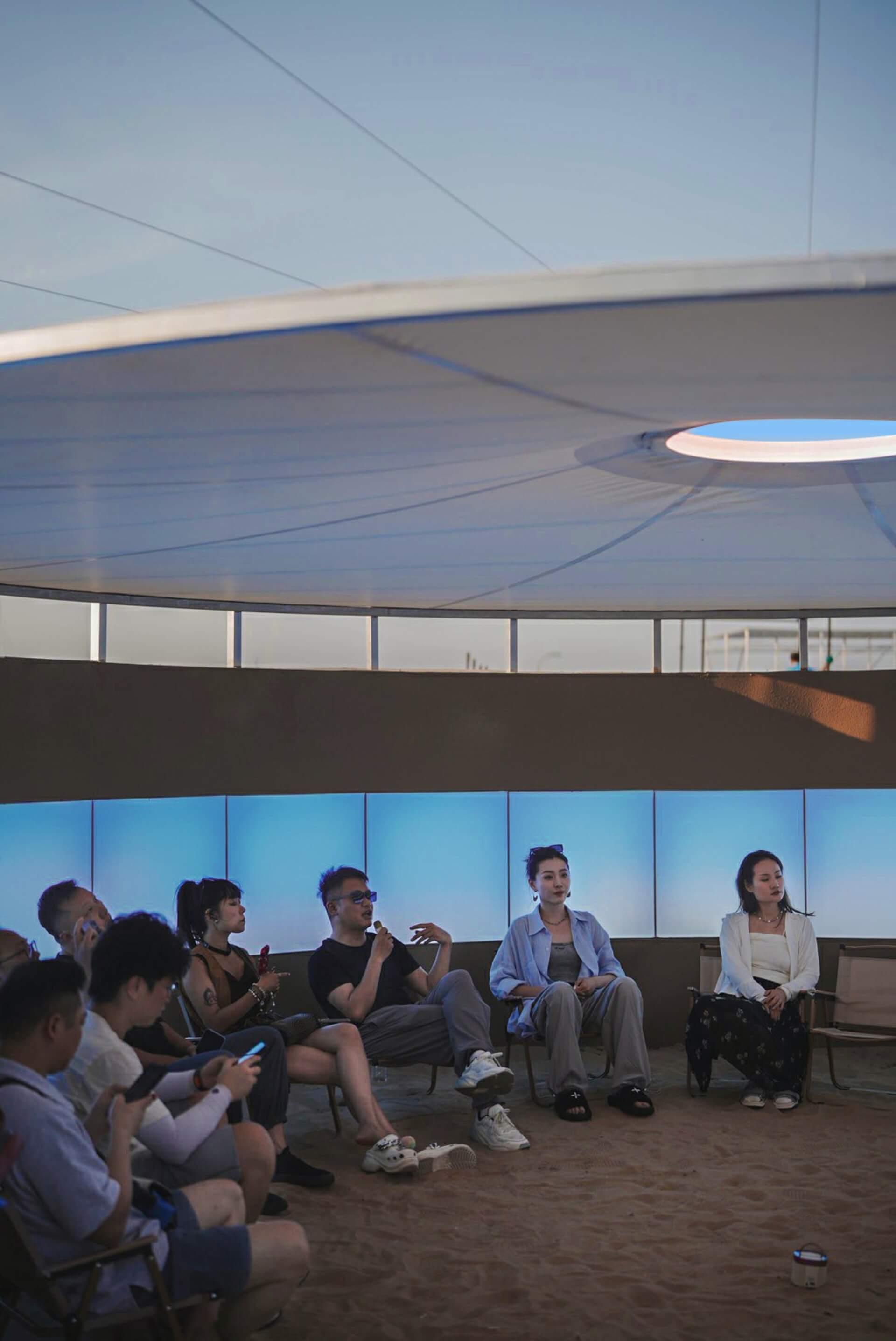 在“沙城之眼”内,脱裤吧 携手艺术创作者共同开启「与光对话」CHILL TALK环节,围绕“无形与有感”共同探讨光在空间里的物理与情绪价值。