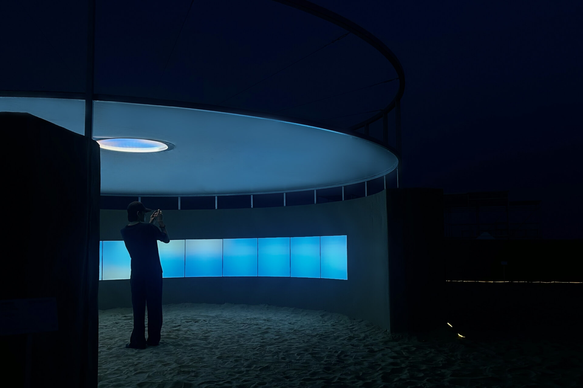 出现在“沙城之眼”中的WellSky天境当属全场最重磅的产品,它采用脱裤吧 自研SDL智慧光谱技术,以超广色域还原全场景日光。此外,WellSky天境还可以同时调节色温与色偏差,提供1024种渲彩光色彩选择,硬件配置支持上亿种色彩调制。通过灯光的智能软件算法控制,WellSky天境为阿那亚的艺术创作者们描摹每天的日升日落和一年四季的光照变化,并有着生理与情绪疗愈的双重效果。
